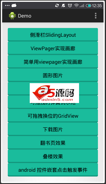 本源码是一个动画效果集合的小例子,包括侧滑栏SlidingLayout、ViewPager实现画廊、简单用viewpager实现画廊、圆形图片、简单的跑马灯动画效果、可拖拽的弹簧式水泡、可拖拽换位的GridView、下载图片、翻书页效果、叠楼效果、android 控件嵌套点击触发事件、等十多种功能或动画效果实现,