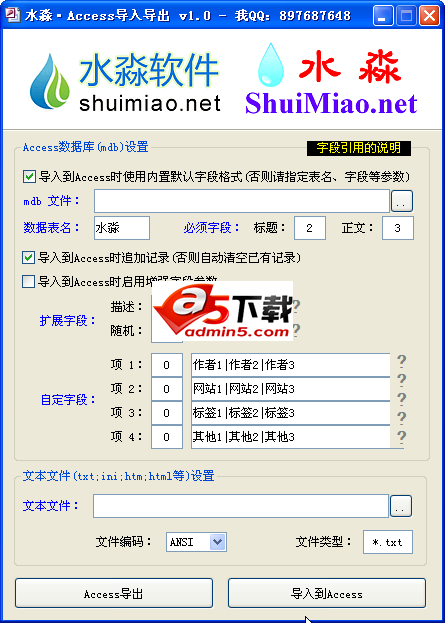 水淼Access导入导出器一款免费的txt和mdb互转工具,将Access数据库的记录导出到文本文件,或将文本文件导入到Access数据库记录(可做文章入库之用)。