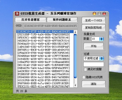 GUID批量生成器是一款生成guid的辅助工具。所谓的GUID是一个通过特定算法产生的二进制长度为128位的数字标识符,用于指示产品的唯一性。guid生成器支持批量生成,是很不错的e语言小工具。