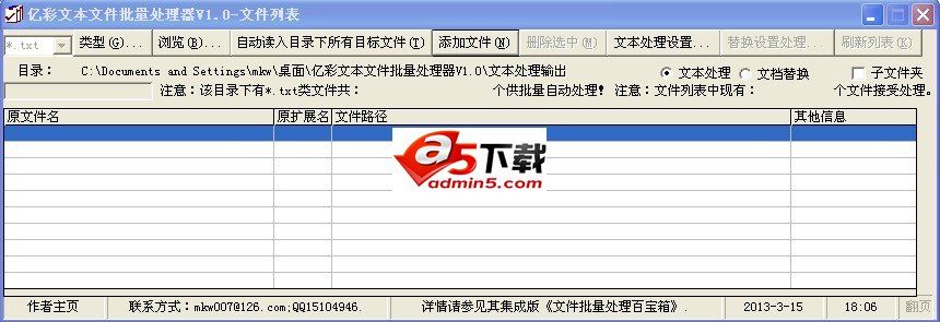 本软件提供了45大类共几百种针对txt文本文件的全文或者每一行的批量处理或者批量替换操作,是您经常性处理文本文件的得力工具。