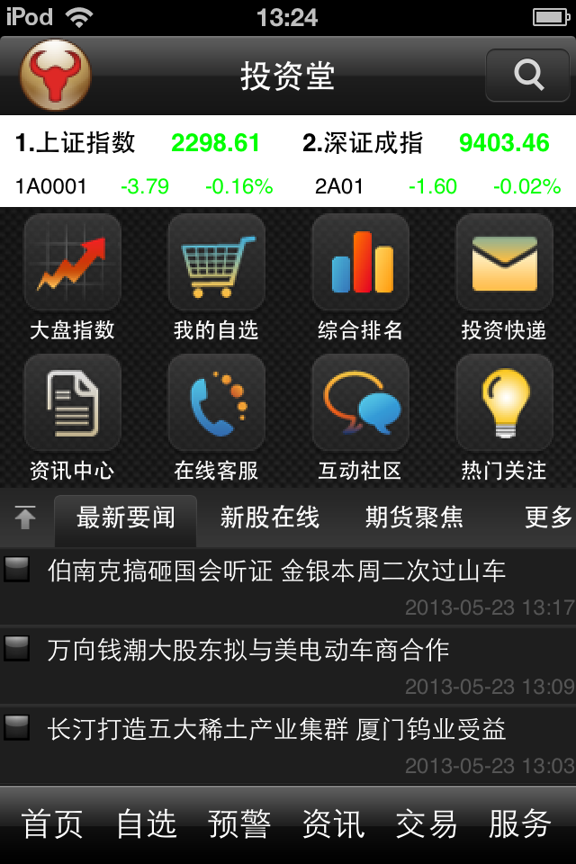 登录wap站即可查询股市、期货、外盘行情;软件下载专区选择适合您手机的炒股软件;模拟炒股学习怎样炒股,演练炒股技巧;最牛最火爆的股友论坛和聊天室,各路高手谈股论金;在线客服功能,登陆手机论坛提问,客服会及时解答(投资堂客服热线:0571-56696192)。