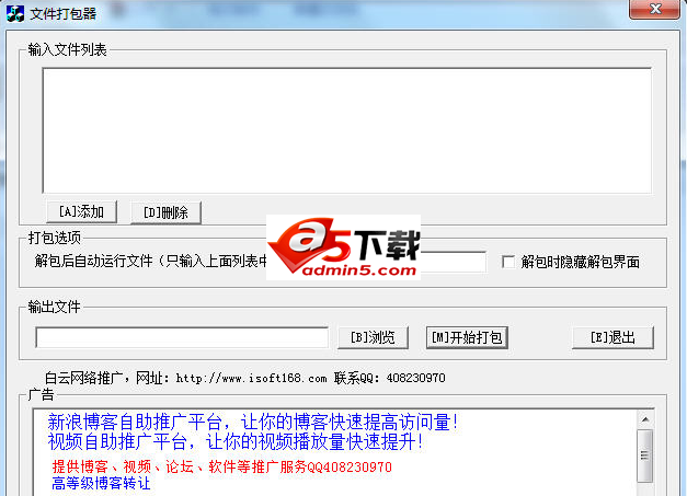 文件打包器是一款简单的文件打包器,可以将多个文件打包成一个可执行文件,可以指定生成后的文件解包时是否隐藏界面、解包后自动执行指定的文件名等参数的软件工具。