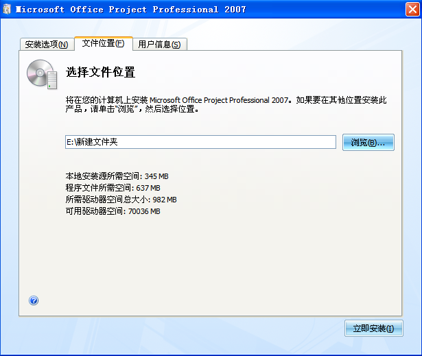 点击“浏览”,选择你想要放在的安装硬盘里,然后点击“立即安装”,得到如下界面: