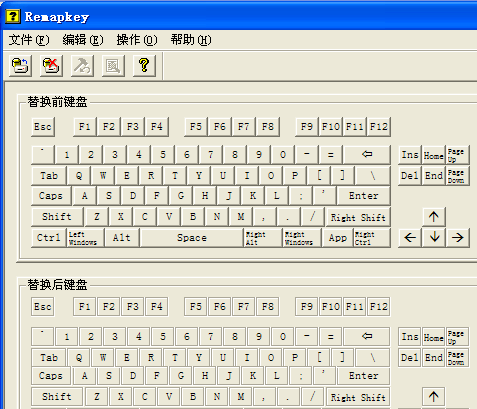 上面显示的是原来的按键位置,你按住要更改的键不放,将其拖入下面要代替它的位置即可。重启后即可生效。