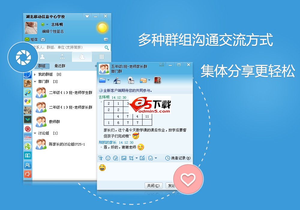 完整的组织架构,实名制用户认证,班级通讯录一目了然,沟通随时随地;