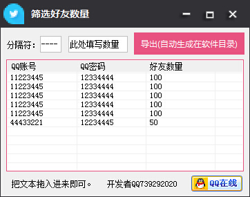 做淘宝客的朋友知道。买到的信封有的好友数量少。我们可以用到这款筛选qq好友数量去筛选