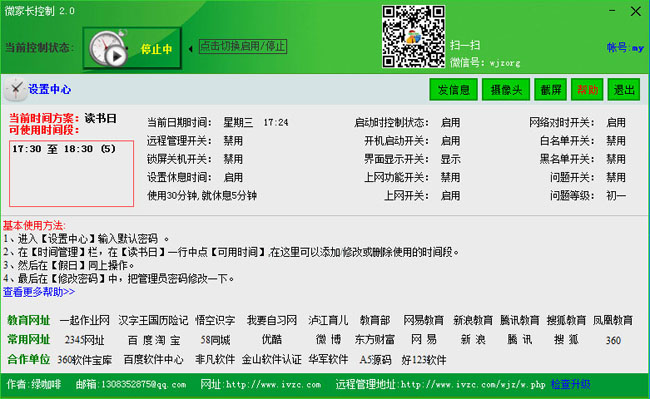今天小编要给大家介绍一款专业好用的计算机控制软件——微家长控制电脑。软件主要为各位家长设计,能够让家长很好的监控孩子上网时间和上网内容,防小孩过度沉迷电脑。软件可以实现远程关机,锁机,发信息,查看屏幕图像,摄像头图像等诸多功能。微家长控制电脑界面美观简洁、使用方便、对于各位家长来说是一款很不错的软件,小编这里推荐大家使用这款软件!