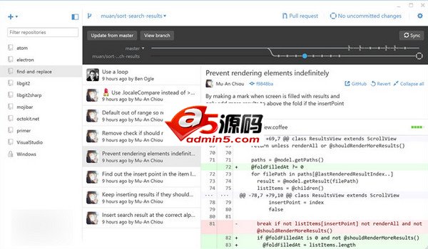 GitHub Desktop 完全免费,如果你的电脑上已经安装过旧版的客户端,那么它们将会自动更新到 GitHub Desktop。新版的 GitHub 客户端能够与 GitHub Enterprise 一同使用。新版的亮点有很多(比如协作工具),会在侧栏列出所有工作中的项目(便于用户克隆、新建),会显示出直观的时间线 (可直观了解当前项目的分支、Commit 情况等)
