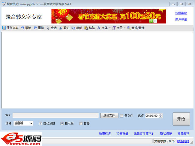 录音转文字专家是一款录音/视频文件快速转换成文字的软件,支持普通话、英语、粤语,准确率可达到 85%-95%,可大大减少劳动量,并提高工作效率,转换1小时的录音最快仅需10分钟,5.0以上版本可以直接转入任意音视频文件。