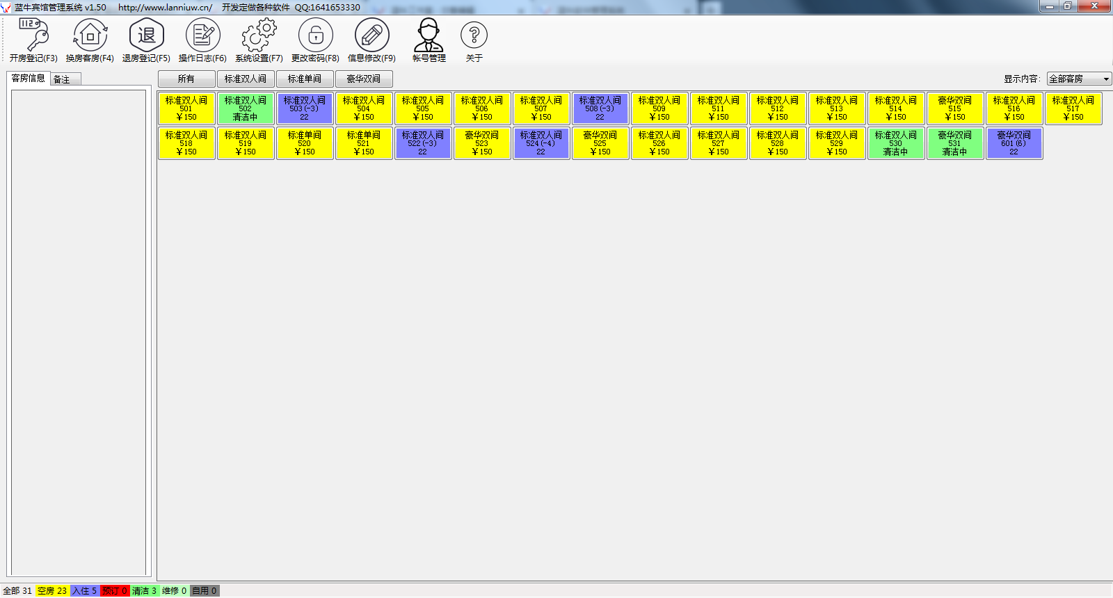 蓝牛宾馆管理系统具有是全网最简单实用的 宾馆客房软件 操作简单、功能实用、永久免费使用等特点。 适用于小型宾馆、招待所等提供住宿服务使用