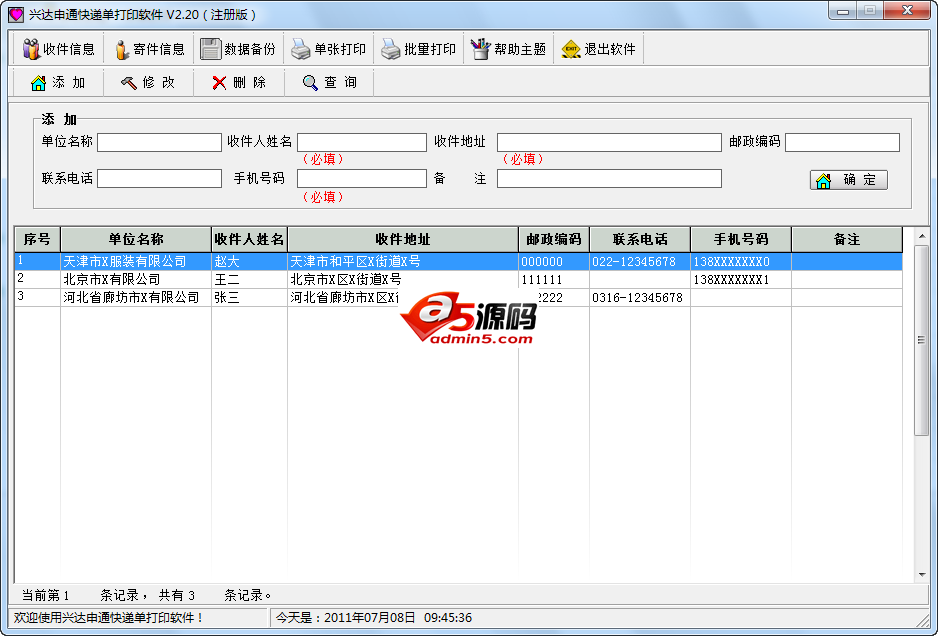 提示:兴达快递单打印系列软件可以共用一个数据库(data.mdb)。