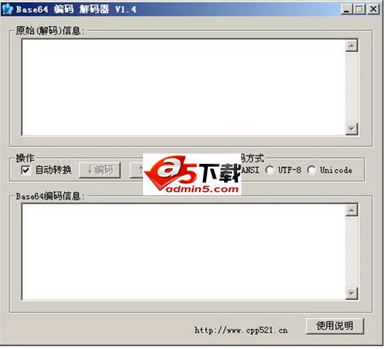 这是一个很好的Base64编-解码工具.转换很方便,支持中文.
