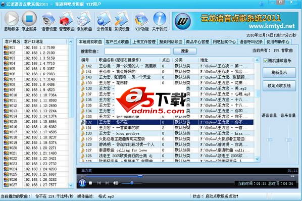1.永久免费,使用云龙网吧语音点歌系统2011
