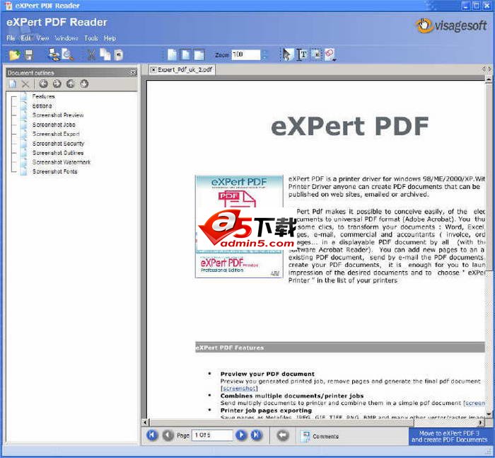 eXPert PDF Reader是一个完全免费的PDF阅读器,支持更换皮肤。不含任何spyware。主要特点:支持修改PDF文件,查看及启动运行速度迅速。