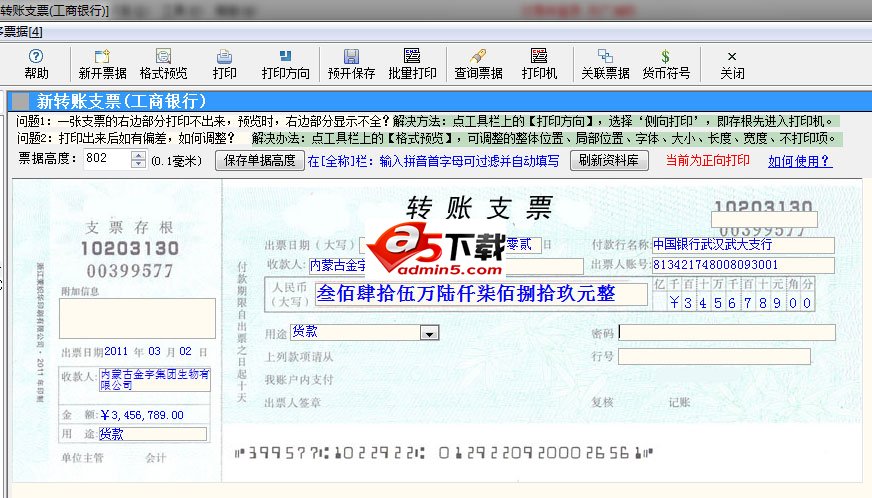 5、适用工行、建行、农行、中行、农信社、交行、中信、招行、民生银行、兴业银行、广发银行、华夏银行、深发展银行、浦发银行、商业银行、河南农村信用社、平安银行、农业发展银行、广州商业银行(模板在不断增加)等近百种票据的输出打印。