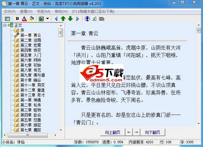 龙龙txt小说下载阅读器最好的小说下载阅读器,用该软件打开大文件的txt小说时,支持自动分章节、自动生成目录。