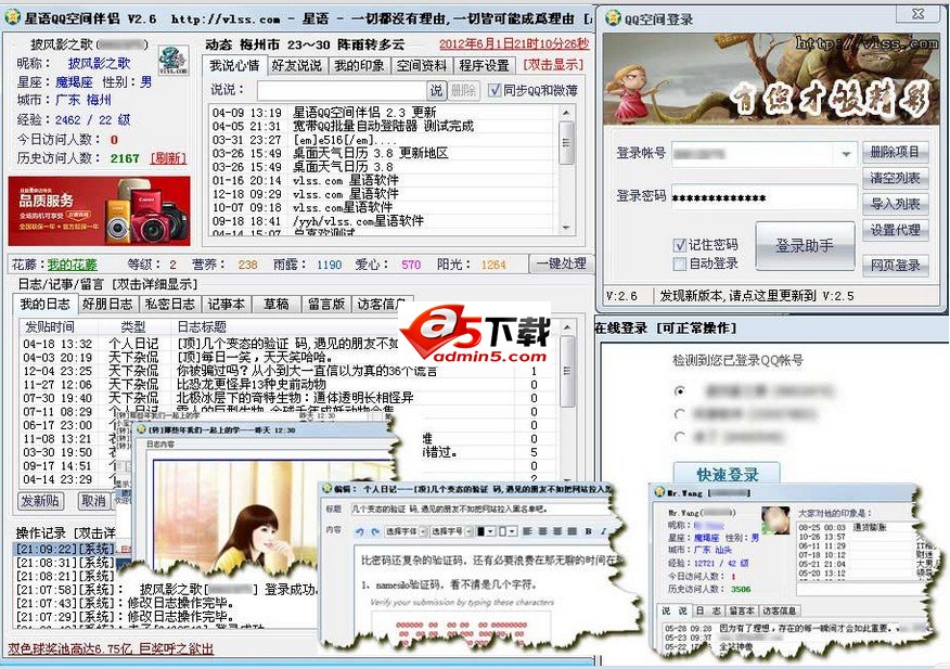 星语QQ空间伴侣全新改版,改版后不再是单单只可发留言那么简单。此次改版之后支持心情、说说、印象、日志、记事、留言板、好友信息、天气等功能。