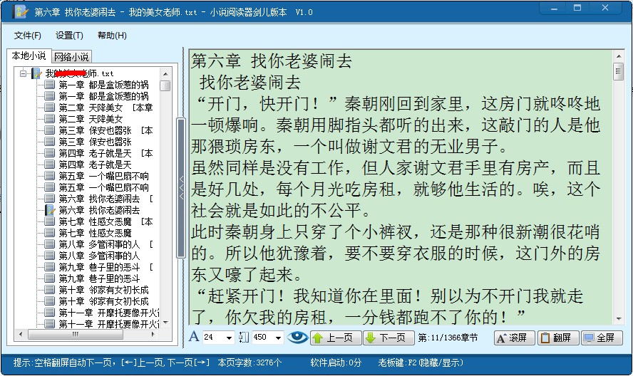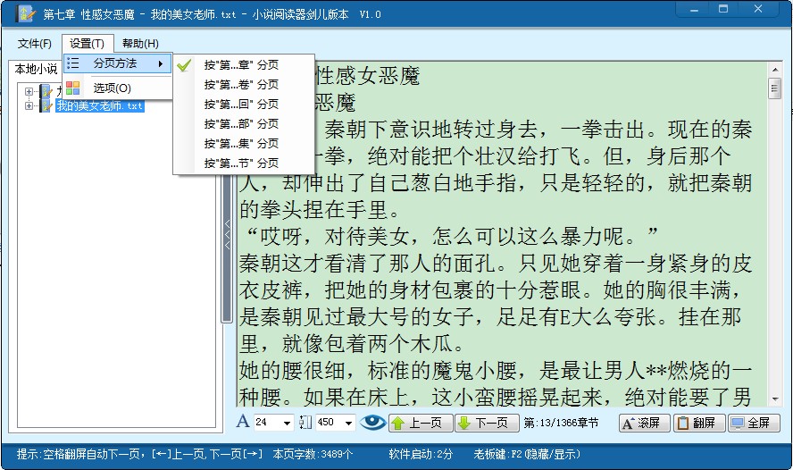 4.完全自定义设置字体,行距,颜色等参数,并自动保存最后的设置方案和上次的进度;