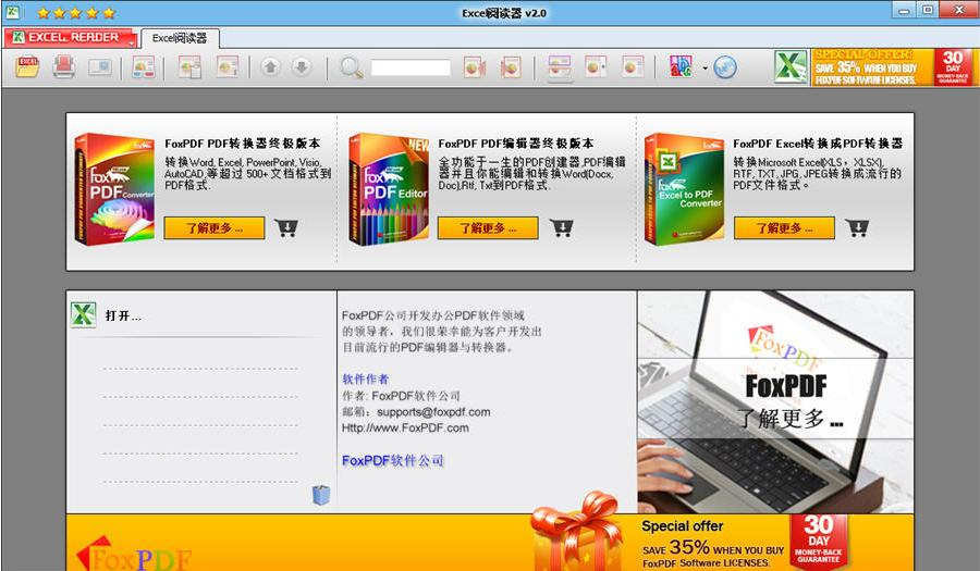 打开,阅读和打印Excel文档来自于FoxPDF Excel阅读器;