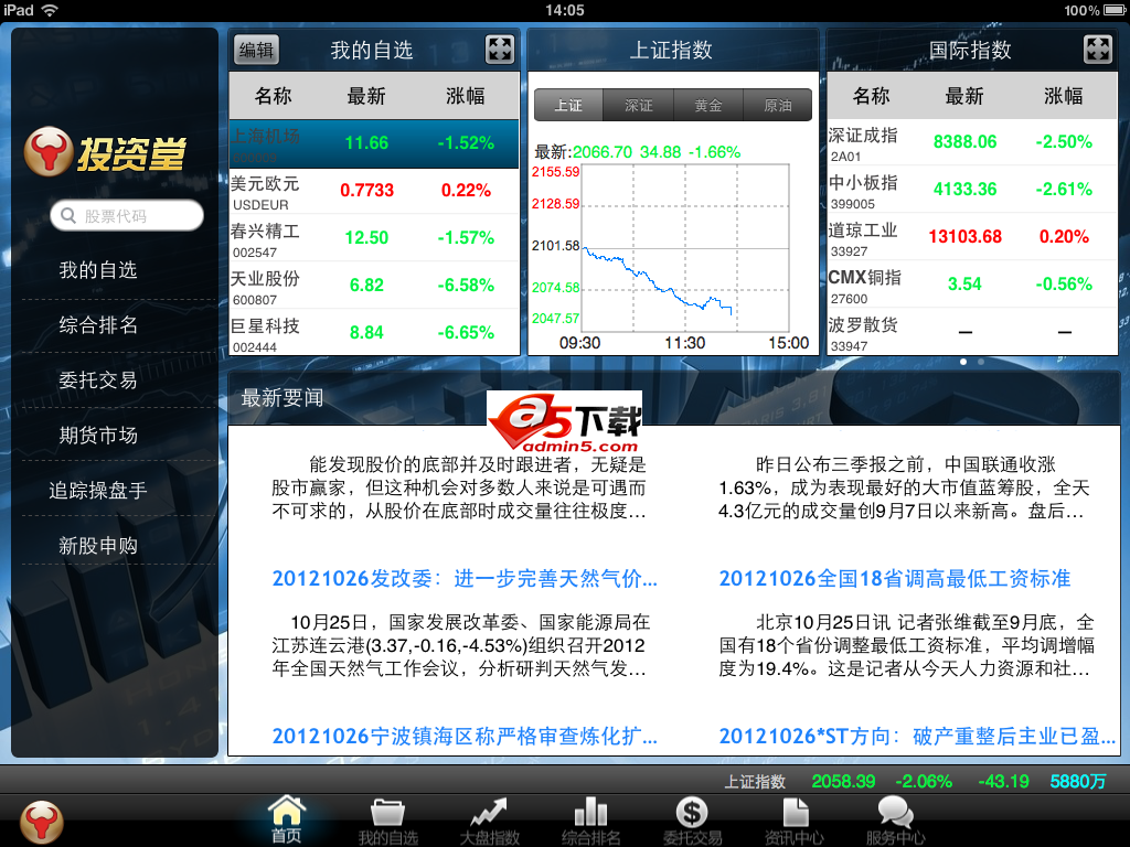 投资堂ipad版全新升级,股票、黄金、贵金属、期货、外汇、港股、基金、原油、实时数据,极速体验。行情、交易、资讯、龙虎、资金、预警一应俱全。永久免费,直接登录,操作功能强大,界面直观。支持机型品牌多样,兼容性良好,赶快下载吧!