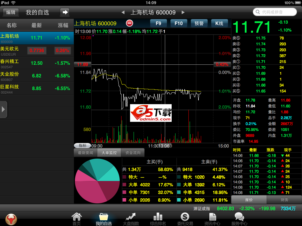 √高速行情提供沪深股票、黄金、期货、基金、外汇、外盘等实时行情,几乎涵盖所有金融市场,行情数据卫星直达。