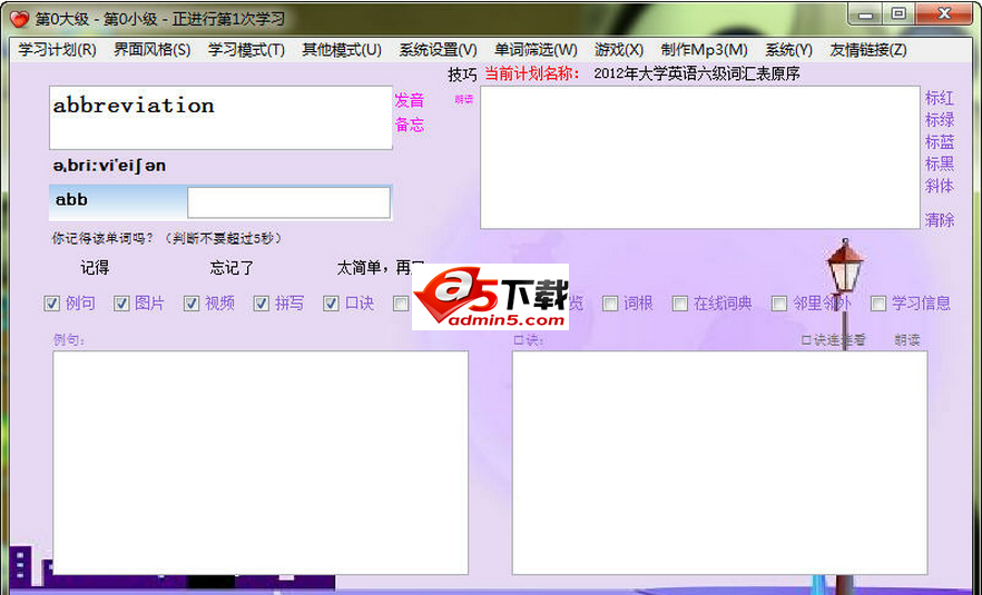 程序新加入了“口诀”面板。完美整合了《为爱背单词》强大的学习引擎与《口诀背单词》神奇记忆效果的软件,使你学习、掌握的单词数量成串成串的增加。