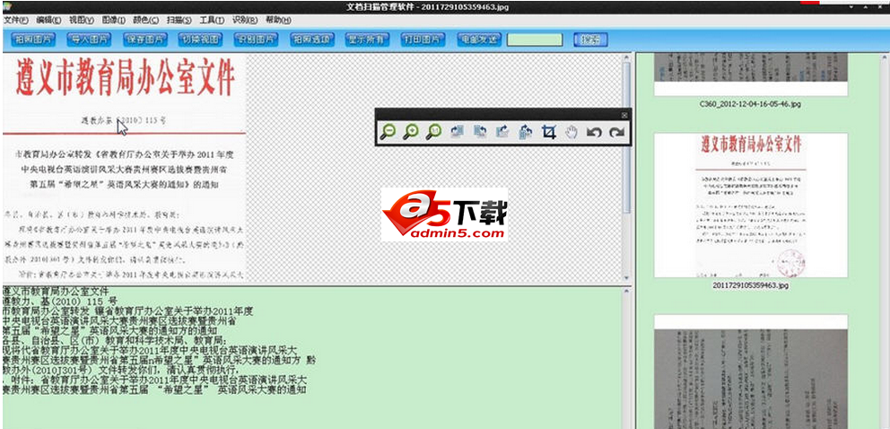 9 图像处理功能:OCR Document Recognition 为您提供了功能强大的图片处理功能,实现了图像处理软件的常用功能,为您提供图片镜像、旋转、裁切、改变图像大小、反色、灰度图、二值图、增降亮度、增降饱和度等功能。同时,还提供对文档图像进行文字识别及提取文字的功能,将文档图像转化为可编辑的文本文件。