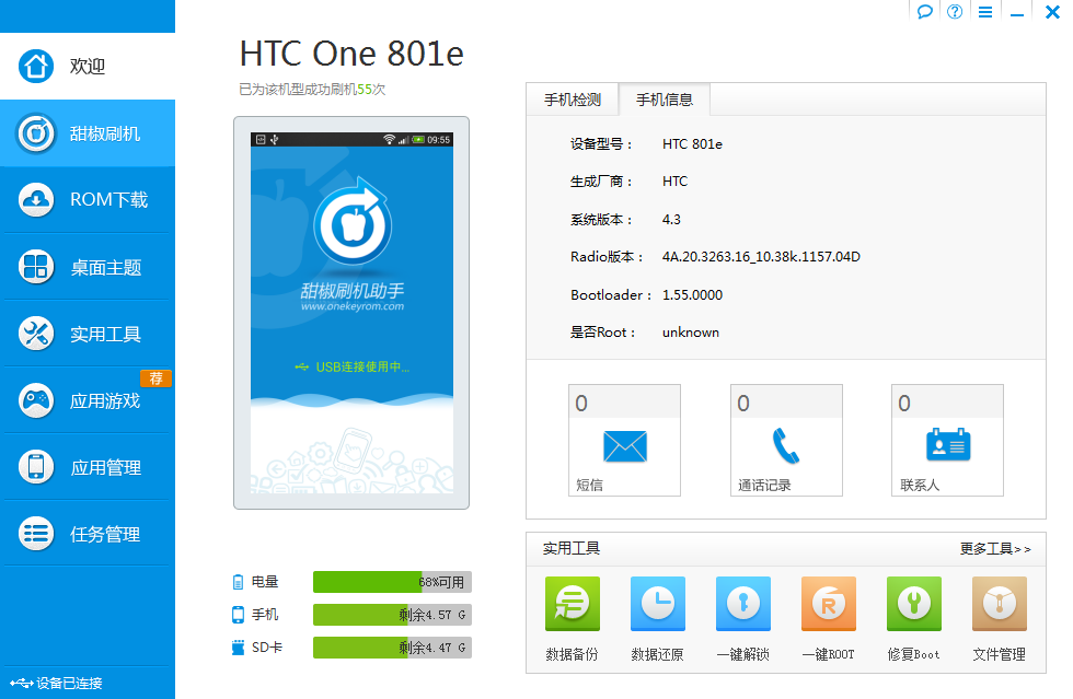5.实用工具:提供多款实用小工具,如一键Root、Recovery、Fastboot、Download等快捷入口。