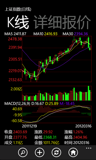 1、拥有MACD,KDJ,RSI等11种技术指标,日线,周线,月线等七种周期K线,满足您股票技术分析需求;