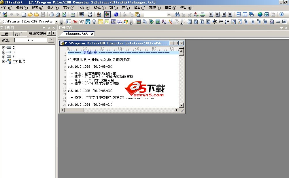 UltraEdit文本编辑器是一款专业的文本编辑器软件。软件适用于Web开发者、技术作者、程序员、系统管理员、记事本替换、超级用户等多种用户。功能强大,,可以编辑文本、十六进制、ASCII 码,可以取代记事本,内建英文单字检查、C++ 及 VB 指令突显,并能实现同时编辑多个文件,甚至可以直接用来修改exe和dll文件,拥有强大的方案和工作区,有着可以处理复杂的软件开发的能力。软件界面美观简洁、简单全面、实用方便可快速上手,轻轻松松完成日常文本编辑功能,真正做到简单全面实用。是用户实现文本编辑功能的好帮手。