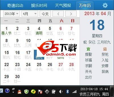 奇速日历简介:不占用电脑屏幕任意位置,定制独特的任务栏时间区显示,拥有农历(宜忌)、节日、节气、天气预报、定时