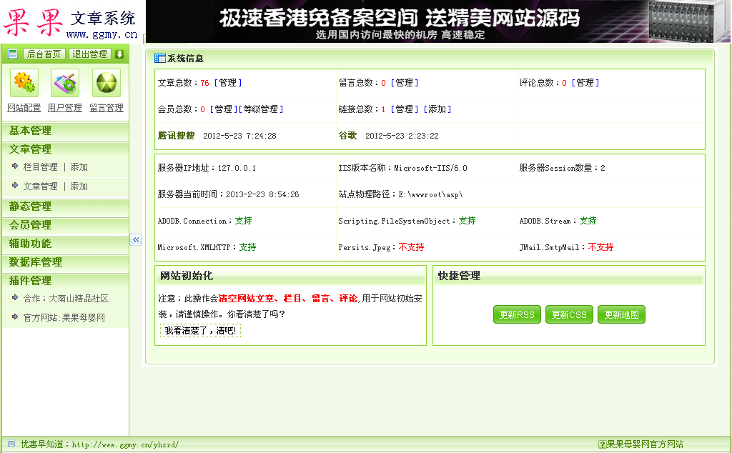 2013年2月8日更新:伪静态优化;先锋类缓存升级,极速ASP页面加载,大幅提高执行效率