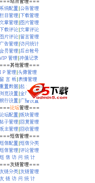 3.系统自带 公告,留言,友链,短信,论坛,广告系统.
