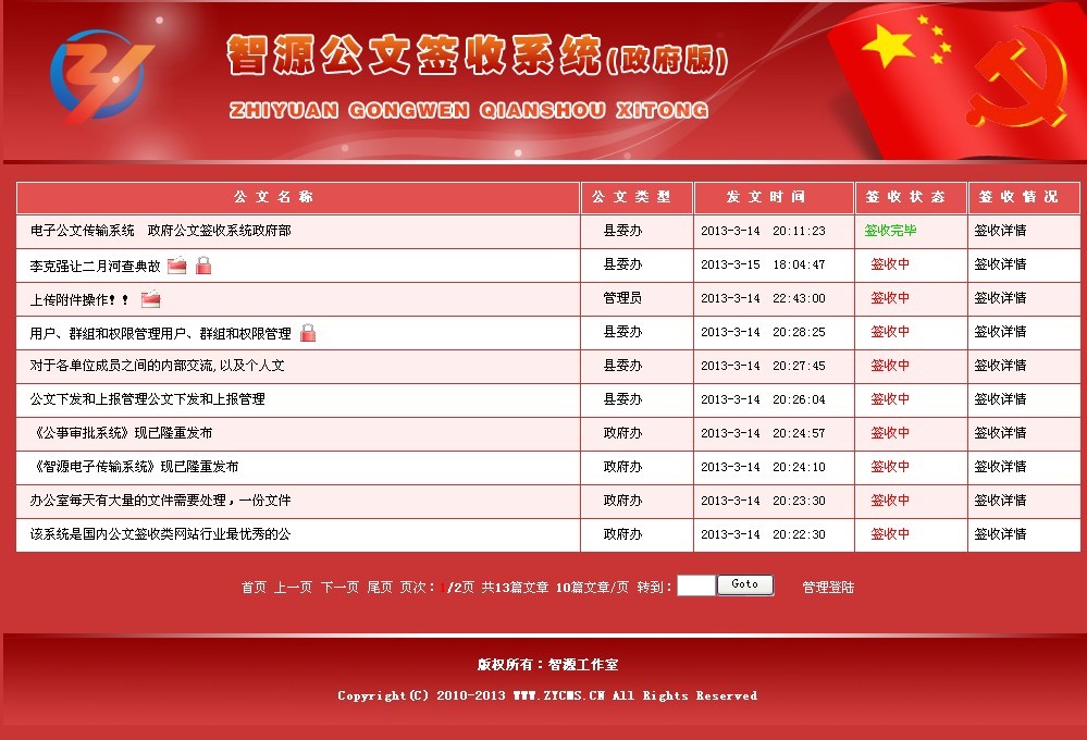 5. 签收公文:签收公文后记录签收信息,实时显示签收状态。