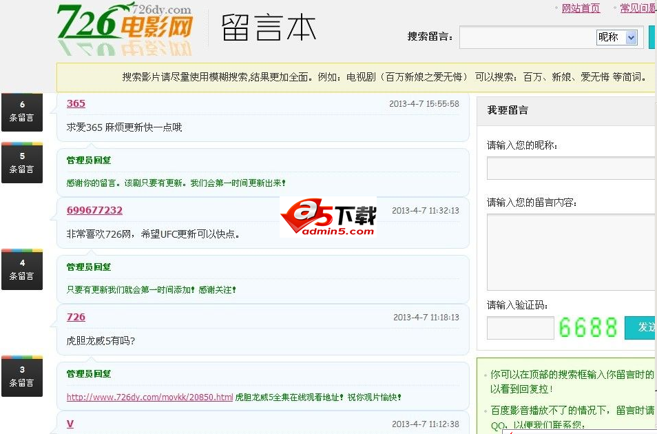 电影网站专用留言系统v1.0 全面兼容ie6 ie7 ie8 Google Chrome ie9没有测试!