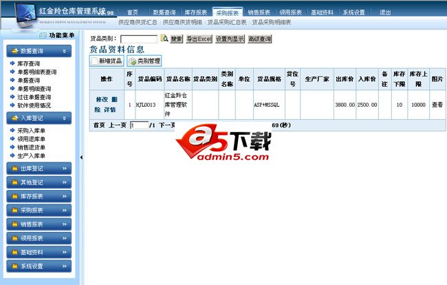 库存管理:(包括查询、库存明细、库存汇总、分仓汇总、库存报警)可以对当前库存进行查询,也可以对滞销、畅销货品的查询。查询时可以根据多种条件组合查询货品记录,可通过EXCEL表导出数据,并可以打印出历史数据列表。