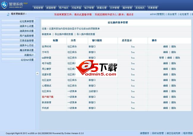 更多功能不一一列出,请自行体验,程序将会持续更新,请留意网站后台顶部的提示,该提示只有管理员才可以看到,无需删除。