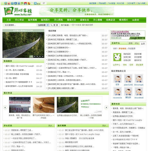 开心客栈笑话网站源码用的是织梦5.7sp1,已经打上最新2012-4-30号的补丁。
