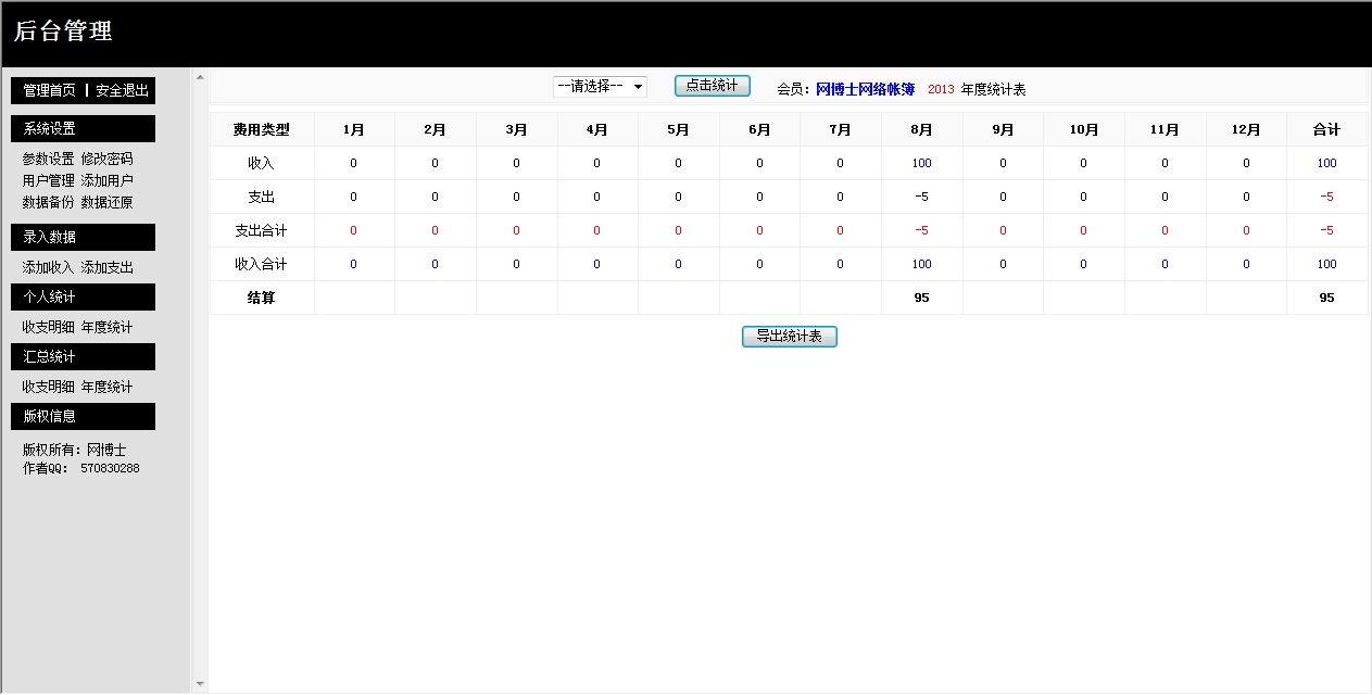 小型公司企业简易网络记账系统,也可以用作家庭记账本,比如您单位有很多同事,他们平时经常会有日常开支费用,此系统可以随时记录,用手机也可以登录操作