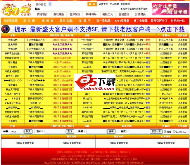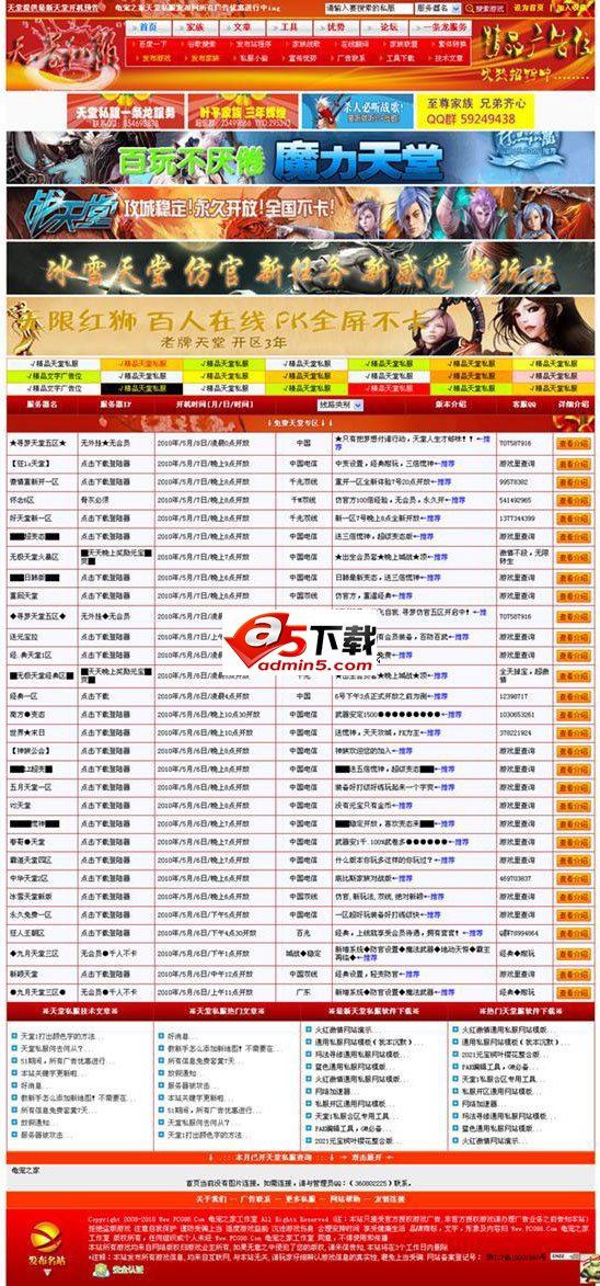 2、首页分套红固顶、套黄推荐、今天开放、即将开放、昨天开放和所有私服显示;