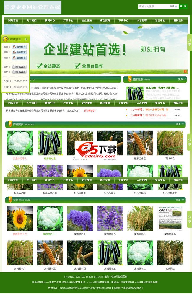 当前位置:下载COM绿色软件园 > asp源码 > 企业网站 > 追梦企业网站管理系统 zmcms v1.46 GBK (绿色农业)