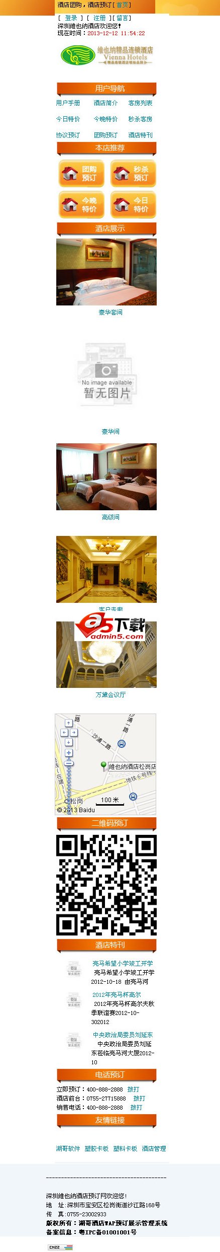 湖哥酒店WAP预订展示管理系统V2.0是一套适合于酒店手机wap浏览与预订的管理系统,本系统适合于现在的Android,IOS,apple,Ipad等手机与终端浏览珥预订,是一个酒店手机用户体验的又一个利器.
