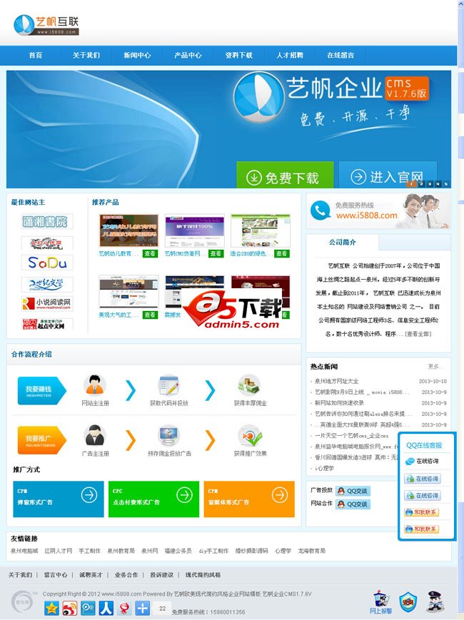 2、艺帆企业CMS V1.7.6提高访问速度、增加用户体验性