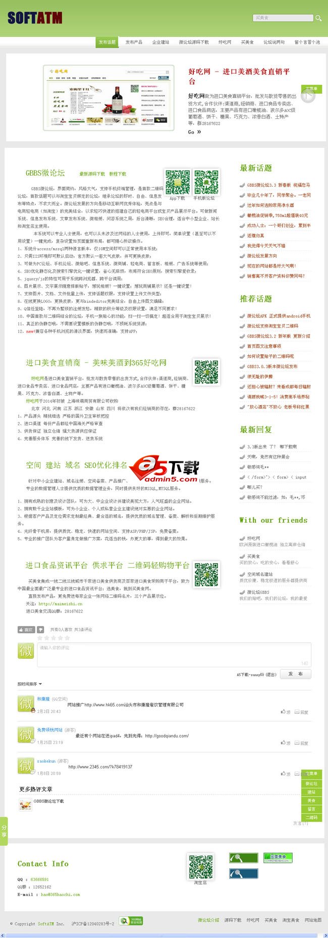 GBBS微论坛,界面简约,风格大气,支持手机终端管理,是首款二维码论坛,首款话题可以与淘宝宝贝绑定的论坛,继承论坛的即时、自由、信息发布等特点,不求大而全。微论坛发展的方向是移动互联网优秀体验,亮点是与电商轻电商(如淘宝)的完美结合,以求轻巧快速的搭建自己的轻电商平台或宝贝产品展示平台。可做新闻系统、信息发布系统、文章发布系统、微相册、问答系统之用,后台清晰,SEO合理,适合中小型企业、站长和淘宝店主使用。