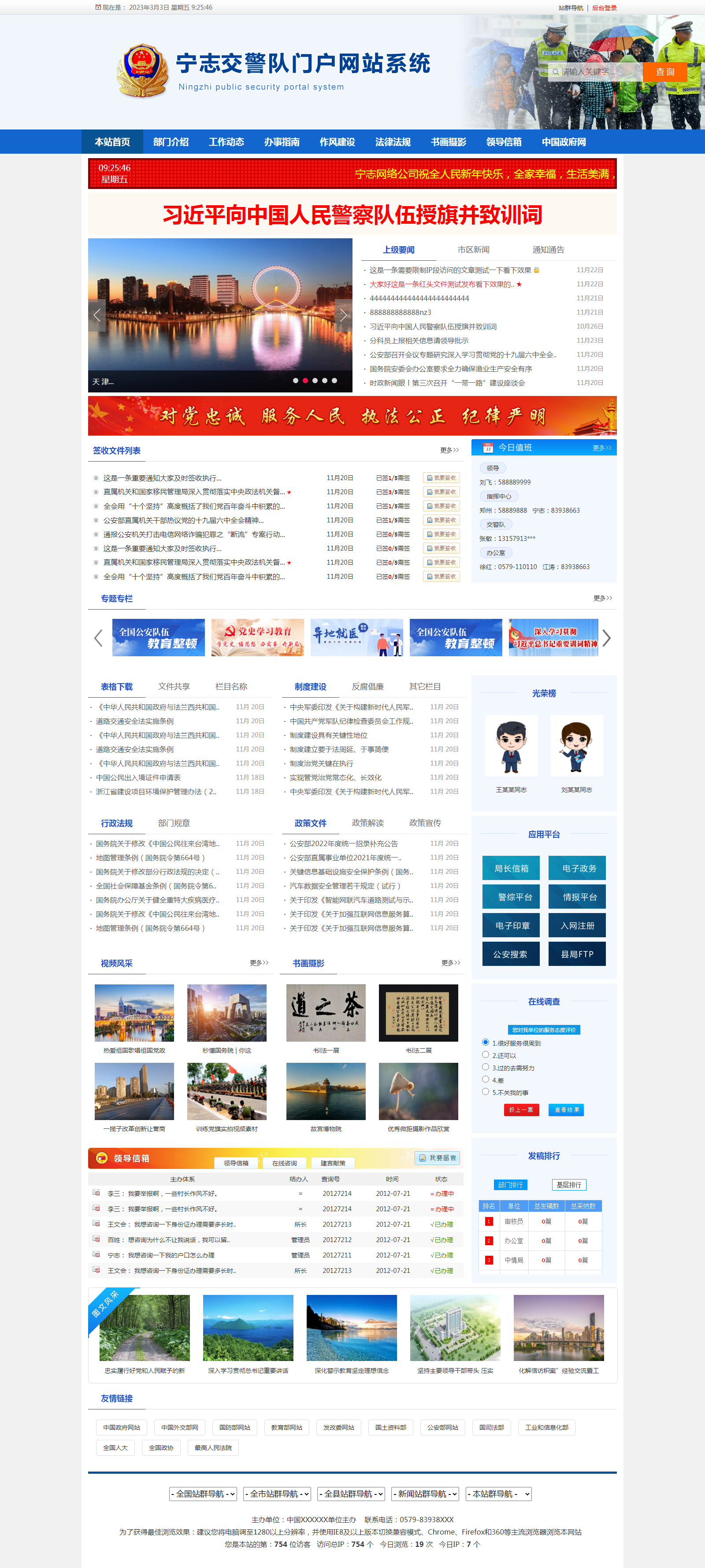 宁志交警队网站管理系统-蓝色模板为基于宁志公安网站管理系统核心程序,专为交警队设计的一套模板,模板风格大气实用。整站布局,调整方便,适合全国各地交警内部网络和互联网建站使用。