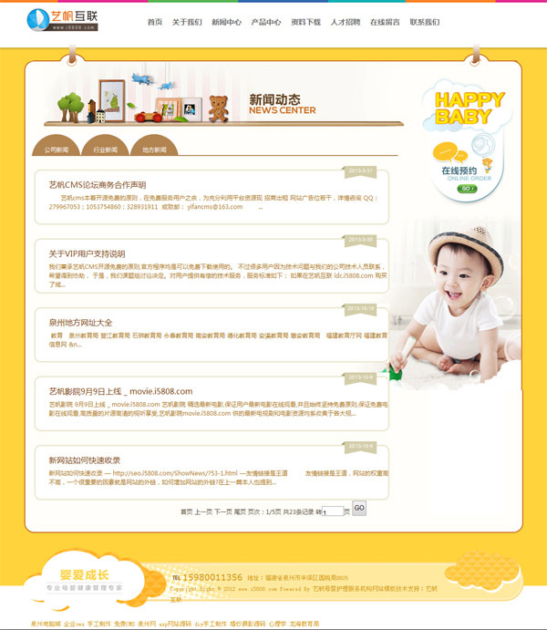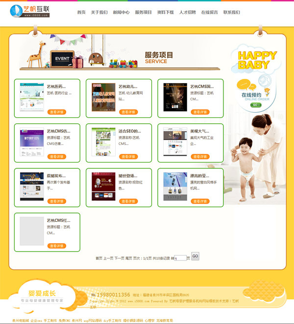 艺帆母婴护理服务机构网站模板是基于艺帆企业cms制作全站DIV加CSS