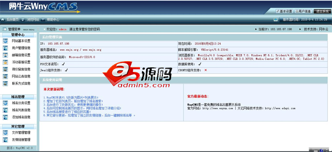 WnyCms米表程序ASP版V2.0,采用ASP开发,后台自由添加、删减、分类对域名进行操作,可快速让域名投资爱好者建立一个独立的专业米表。