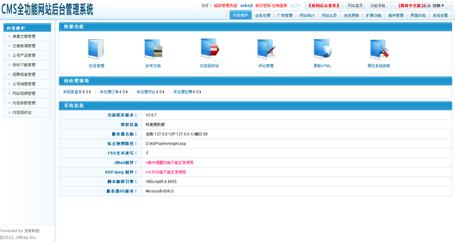 这套源码是aspcms内核二次开发版,功能比较多,而且在官方的基础上也做了很多改进,比如自动内链、自动生成静态、SQL防注入等等,这套源码在windows+iis的环境下就可以正常运行,但是IIS必须是完整的IIS,不能使用简易IIS来运行,否则会提示错误。