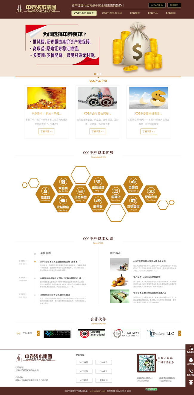 最近这段时间,CCG中券资本在国内比较火,很多地区都出现了CCG中券资本的代理商,CCG中券资本到底是什么模式小编也不是很清楚,但是相信肯定还会有更多的人来做这一类型的网站,所以今天就跟大家分享一套非常不错的CCG中券资本集团官方网站的源码。