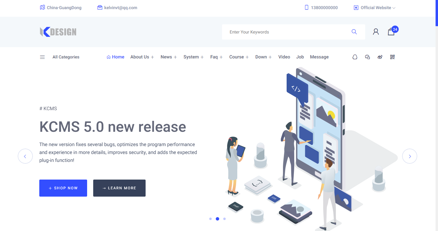 启点在线(KCMS)网站管理系统是一款基于ASP脚本语言的CMS,简称KCMS,具有简单易用,功能强大,性价比高,扩展性好,安全性高,稳定性好的网站系统,可以加快企业及个人网站的开发的速度和减少开发的成本,让不同的用户在懂的少许HTML语言的基础上,就能够快速的构建一个风格个性化而功能强大的网站。